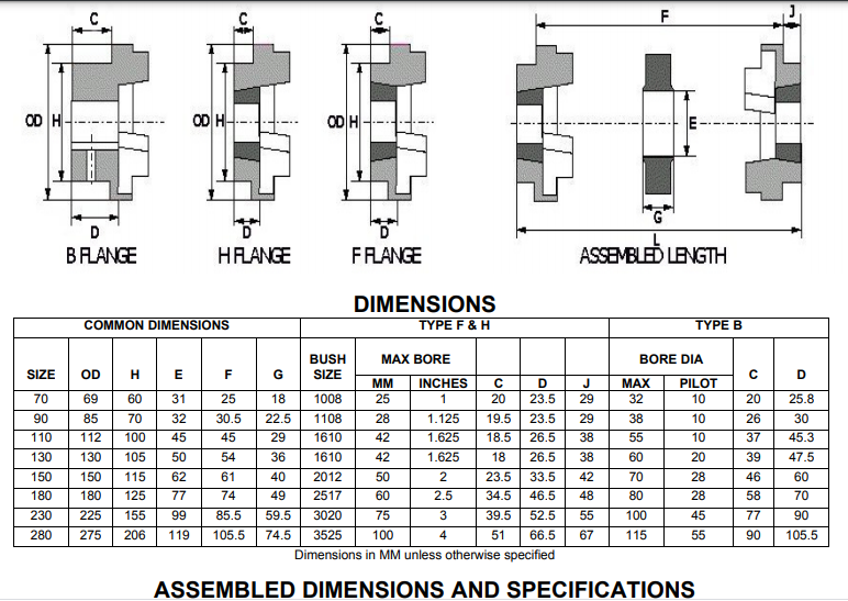 có thể kết hợp cùng Taper bush cho phép tháo lắp nhanh chóng không cần cảo.